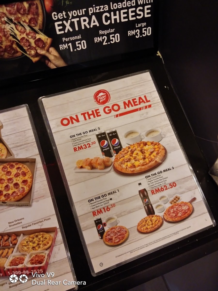 The menu at Pizza Hut Petronas Setia Alam offers a wide range of flavorful dishes for all tastes. The Melts Burger selection includes options like Melts Burger Beef and Melts Burger Chicken. For those craving wings, there are plenty of choices in the Wingstreet section, such as the Krispy Wings - Tangy Cheese (Mini Bucket) and WingStreet Roasted Wings - New Orleans. Pizzas are available in various sizes, including the Supreme Pizza in regular, large, and personal sizes. For a complete meal, the MyBox Melts offers a variety of options, such as the MyBox Melts Burger Chicken (RM37.40) and MyBox Melts Burger Beef (RM39.40), with up to 40% off. If you're looking for a combo, the Wingstreet Combo and Sharing Combo are great choices, with deals like Variety Duo Deals (RM90.70) and Pizza Trio Deals (RM141.30). The Cheesy Bites-Limited Time menu features the Cheesy Bites Long Party Box Jumbo and the WeCombo Pizza 4 Cheesy Bites Dip & Crunch. For something sweet, you can indulge in the delicious Huts Lava or the Huts Chocolate Lava Cake. There’s also a variety of pastas like Creamy Carbonara Spaghetti and Chicken Bolognaise Spaghetti, along with Baked Rice Special Promo such as Baked Rice Creamy Chicken. The drink selection includes Mineral Water, Coca-Cola, and Fuze Tea - Lemon Tea. There are plenty of sides and snacks, from Krispy Fries to Huts Poppers Chicken Bites and Huts Poppers Sausage. The B1F1 Crazy Deal offers great value with a Regular Fun 5 Flavours Pizza (Buy 1, Free 1). With so many options, Pizza Hut Petronas Setia Alam has something for every appetite, whether you're dining solo or sharing with friends and family.